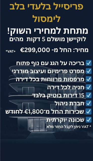 היוקרה של Lev Limassol – במרחק 5 דקות מהים , בלב האזור המבוקש ביותר בלימסול.